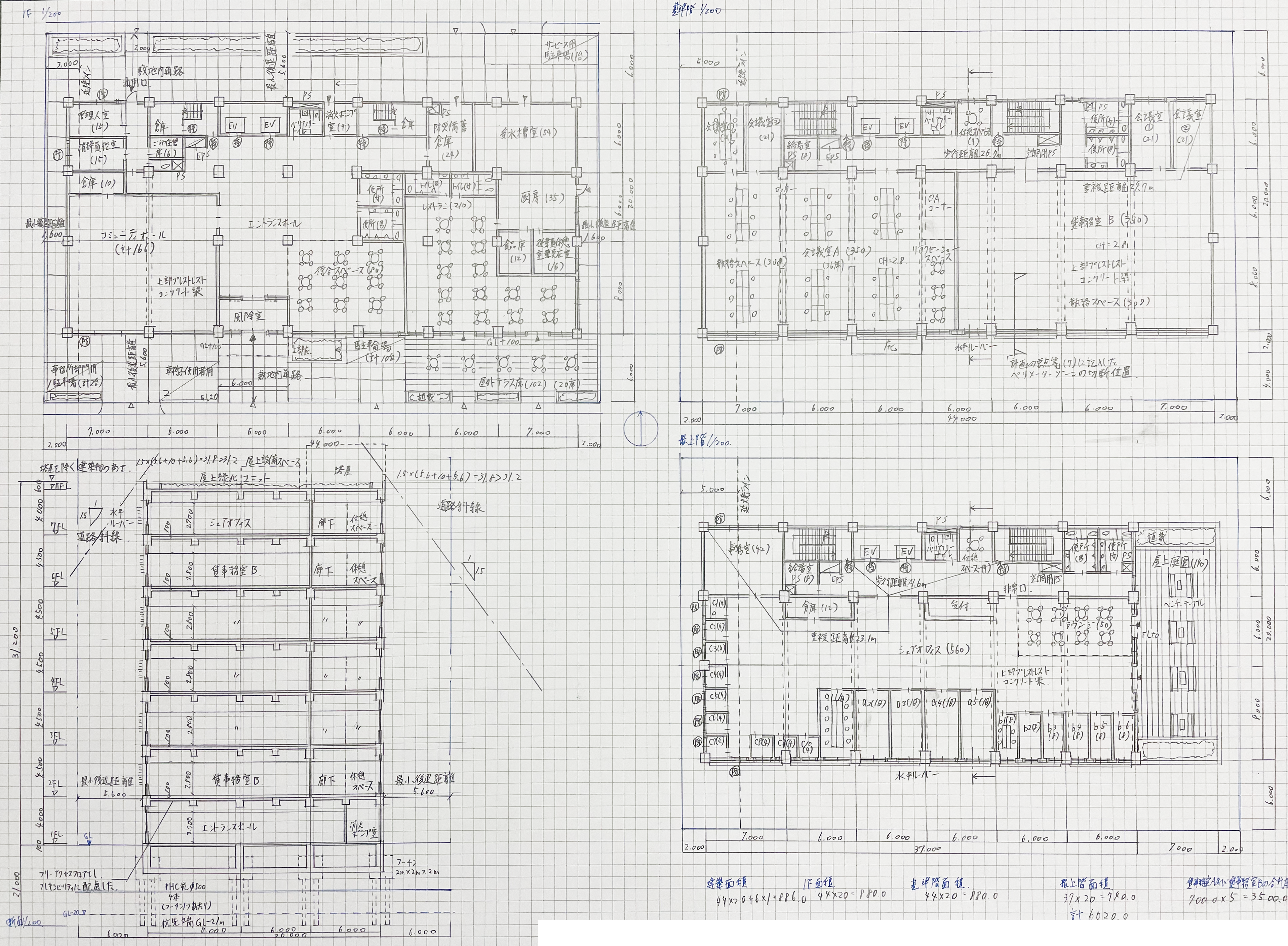 こちらが合格した時の図面です。試験後に描いた復元図です。
